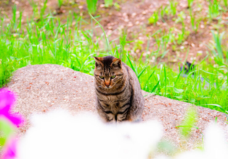 キリッとした表情で佇むキジトラ
